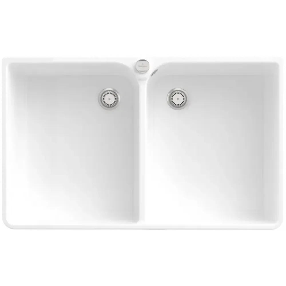 Villeroy & Boch Полувстраиваемая мойка с двойной раковиной 90 X Мойка с двумя чашами, включая Комплект слива с эксцентриком, выкл Керамика, 900 x 550 mm, Альпийский белый CeramicPlus