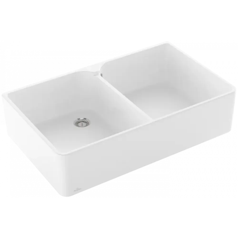 Villeroy & Boch Полувстраиваемая мойка с двойной раковиной 90 X Мойка с двумя чашами, включая Комплект слива с ручным управлением, выкл Керамика, 900 x 550 mm, Альпийский белый CeramicPlus