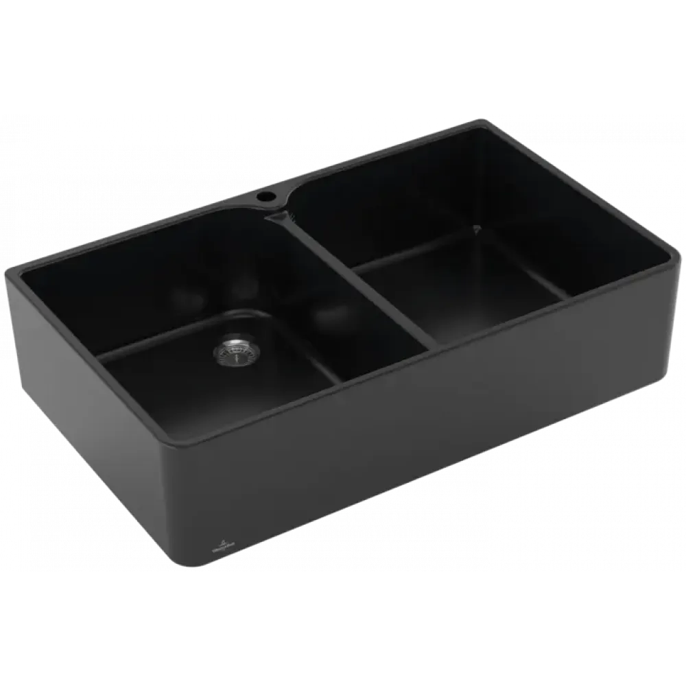 Villeroy & Boch Полувстраиваемая мойка с двойной раковиной 90 X Мойка с двумя чашами, включая Комплект слива с ручным управлением, выкл Керамика, 900 x 550 mm, Ebony CeramicPlus