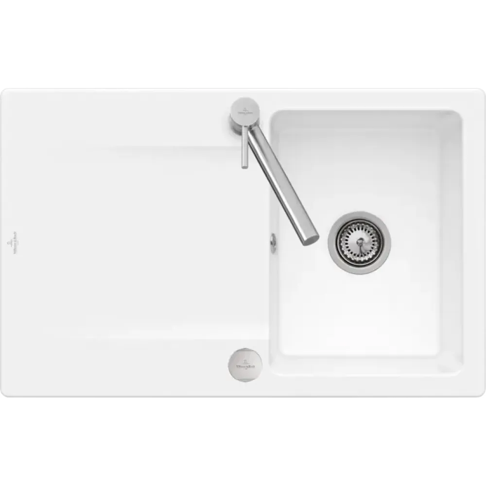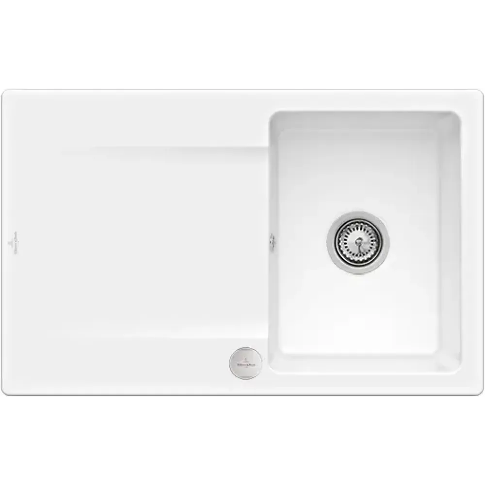 Villeroy & Boch Siluet 45 flat Мойка, включая Комплект слива с эксцентриком, выкл TitanCeram, 780 x 490 mm, Альпийский белый CeramicPlus