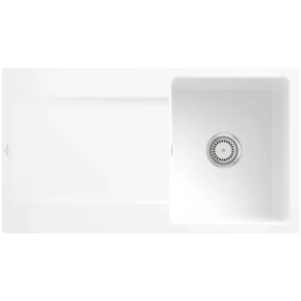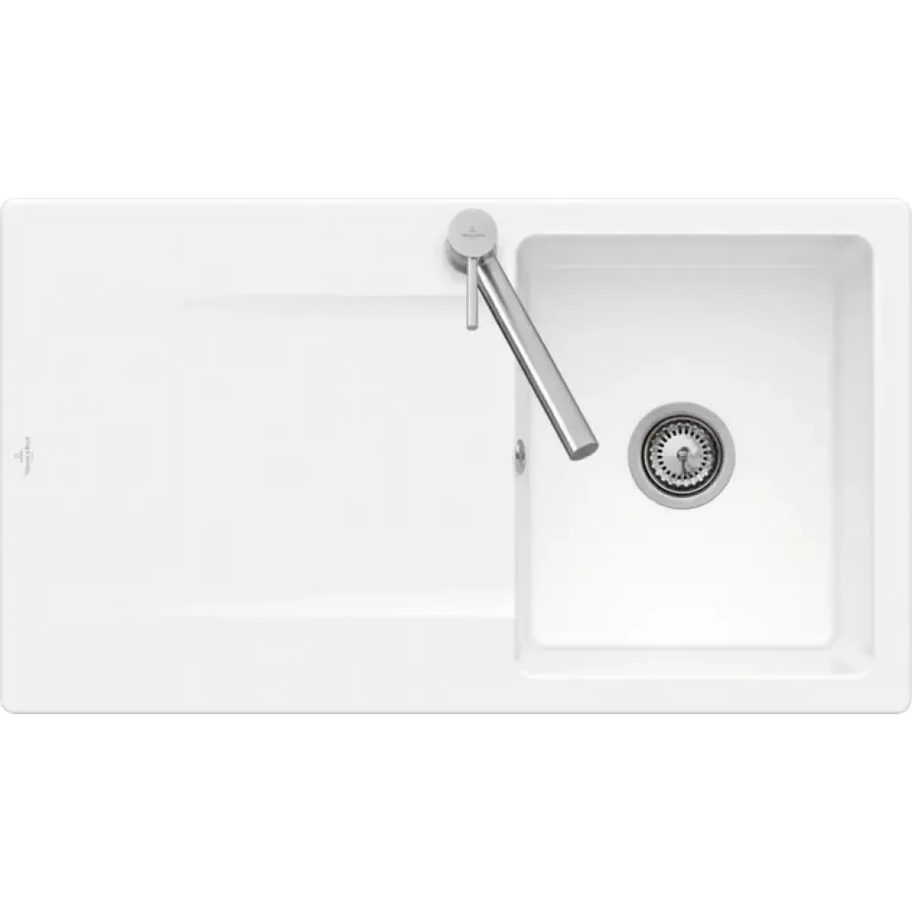 Villeroy & Boch Siluet 50 flat Мойка, включая Комплект слива с ручным управлением, выкл TitanCeram, 880 x 490 mm, Альпийский белый CeramicPlus