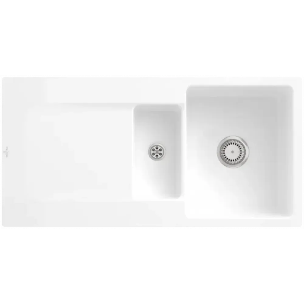 Villeroy & Boch Siluet 60 R flat Мойка, включая Комплект слива с ручным управлением, выкл TitanCeram, 980 x 490 mm, Альпийский белый CeramicPlus