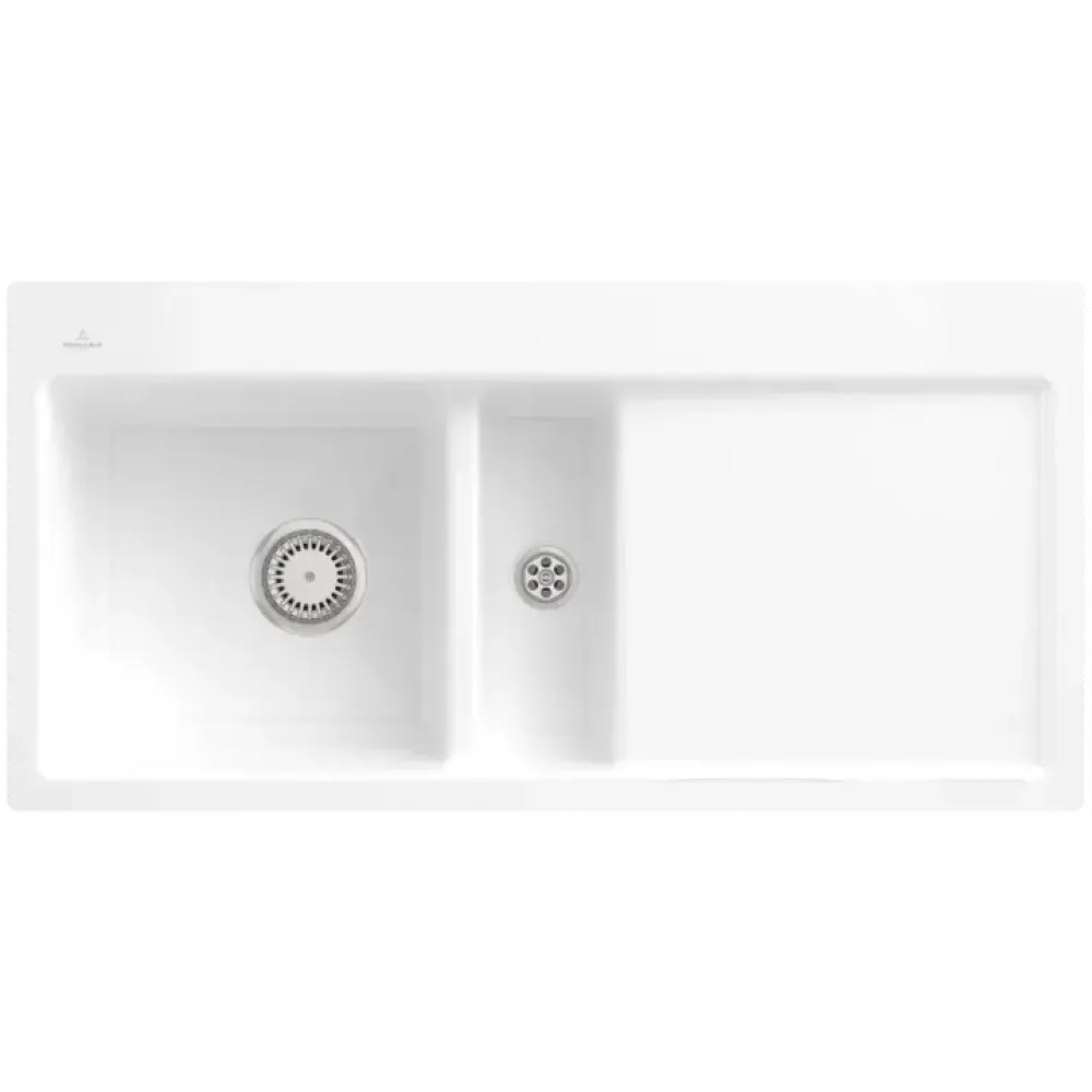 Villeroy & Boch Subway 60 flat Мойка, включая Комплект слива с ручным управлением, выкл Керамика, 965 x 475 mm, Альпийский белый CeramicPlus
