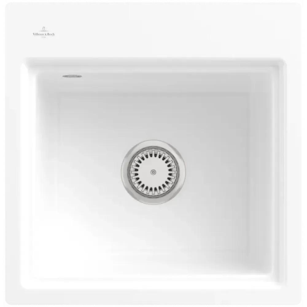 Villeroy & Boch Subway Style 50 S Flat Мойка, включая Комплект слива с ручным управлением, сливная решетка , выкл Керамика, 500 x 510 mm, Альпийский белый CeramicPlus