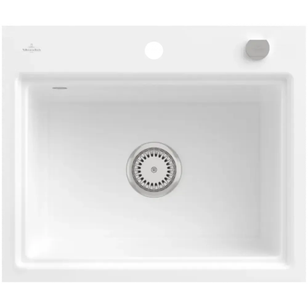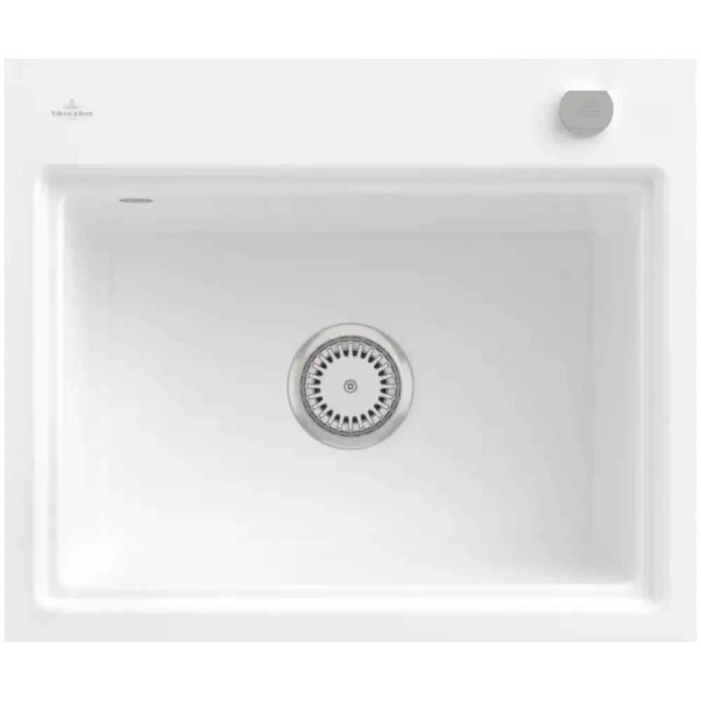 Villeroy & Boch Subway Style 60 S Flat Мойка, включая Комплект слива с эксцентриком, сливная решетка , выкл Керамика, 580 x 490 mm, Альпийский белый CeramicPlus