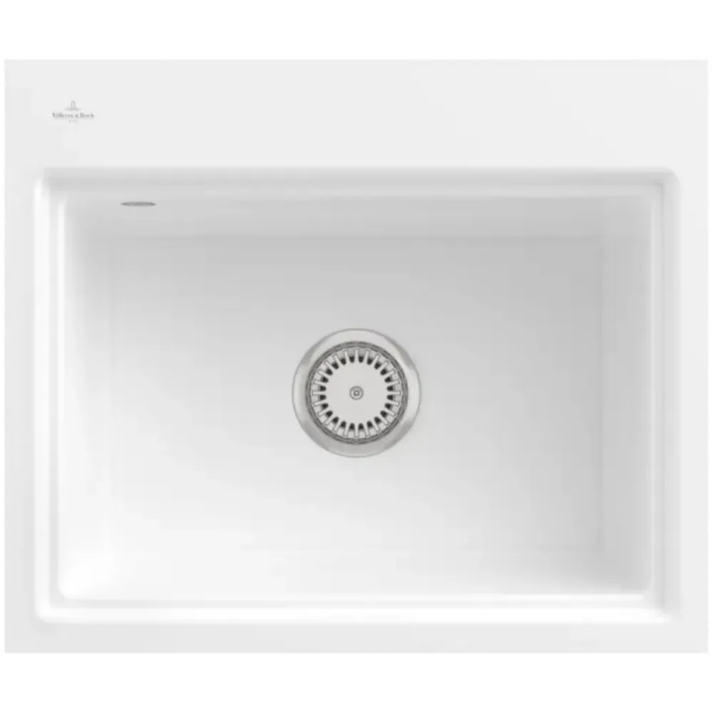 Villeroy & Boch Subway Style 60 S Flat Мойка, включая Комплект слива с ручным управлением, сливная решетка , выкл Керамика, 580 x 490 mm, Альпийский белый CeramicPlus
