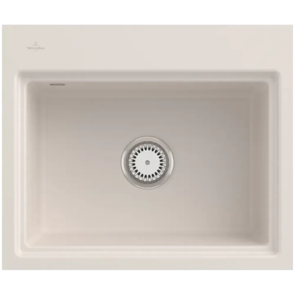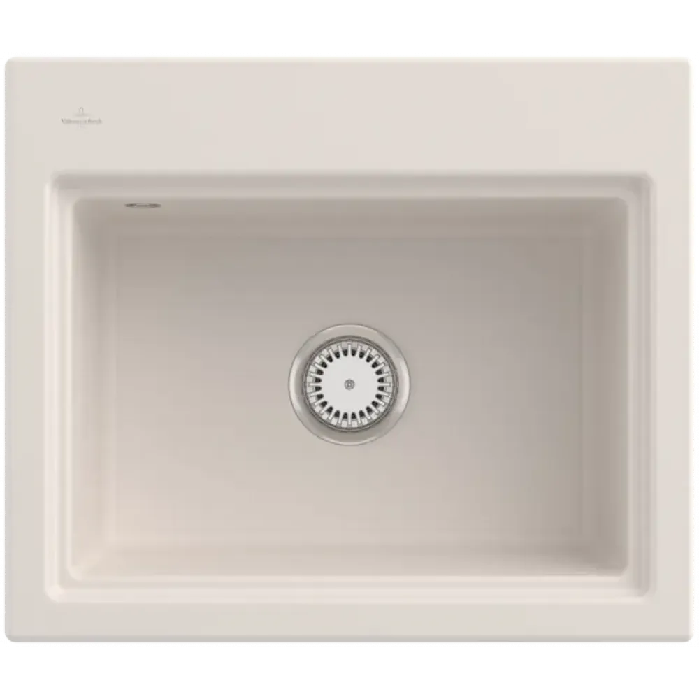 Villeroy & Boch Subway Style 60 S Flat Мойка, включая Комплект слива с ручным управлением, сливная решетка , выкл Керамика, 580 x 490 mm, Crema CeramicPlus