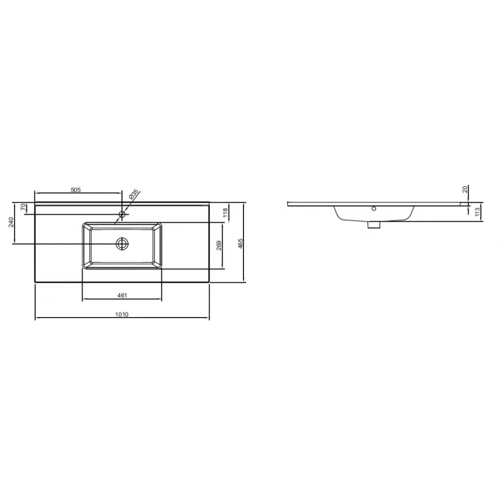 Раковина 100,7 х 46 см, для установки с мебелью ЕВ392RU. Отверстие для смесителя.