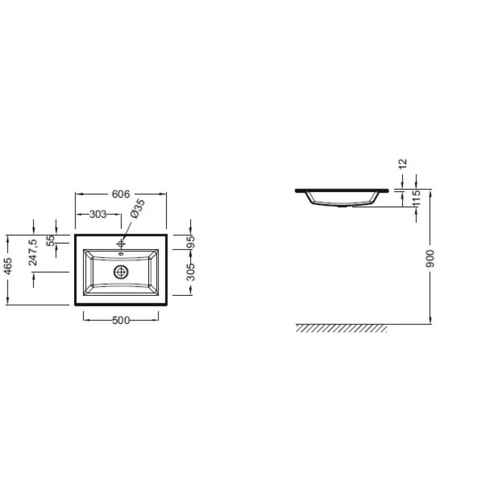 Технические характеристики Мебельная раковина Vox 60х46 см, глянцевый серый, с одним отверстием под смеситель EB2105-DD2 Jacob Delafon