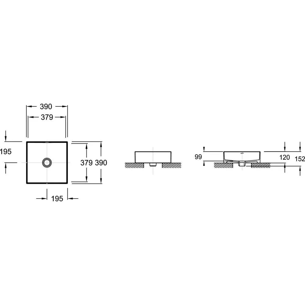 Технические характеристики Накладная раковина Delta Pure 39х39х15,2 см, санфарфор E90011-0 Jacob Delafon