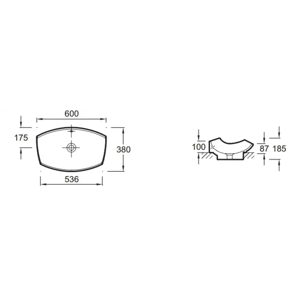 Технические характеристики Накладная раковина Leaf 60х38х18,5 см, с хромированной заглушкой, с отверстием перелива, санфарфор E1186-00 Jacob Delafon