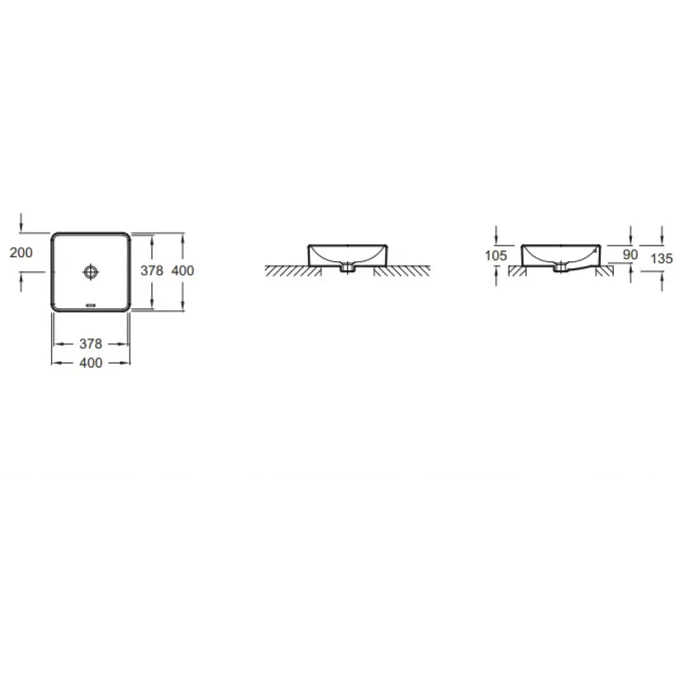 Технические характеристики Накладная раковина Vox 40х40х13,5 см, кашемир, без отверстия для смесителя, с отверстием перелива в передней части, санфарфор EVG102-MK4 Jacob Delafon