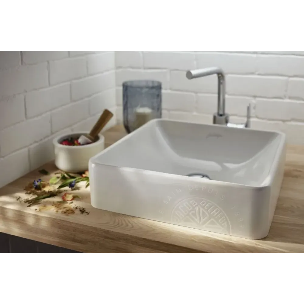 Накладная раковина Vox 40х40х13,5 см, логотип 1930, с отверстием перелива в передней части, с заглушкой, санфарфор EVG102-PT6 Jacob Delafon