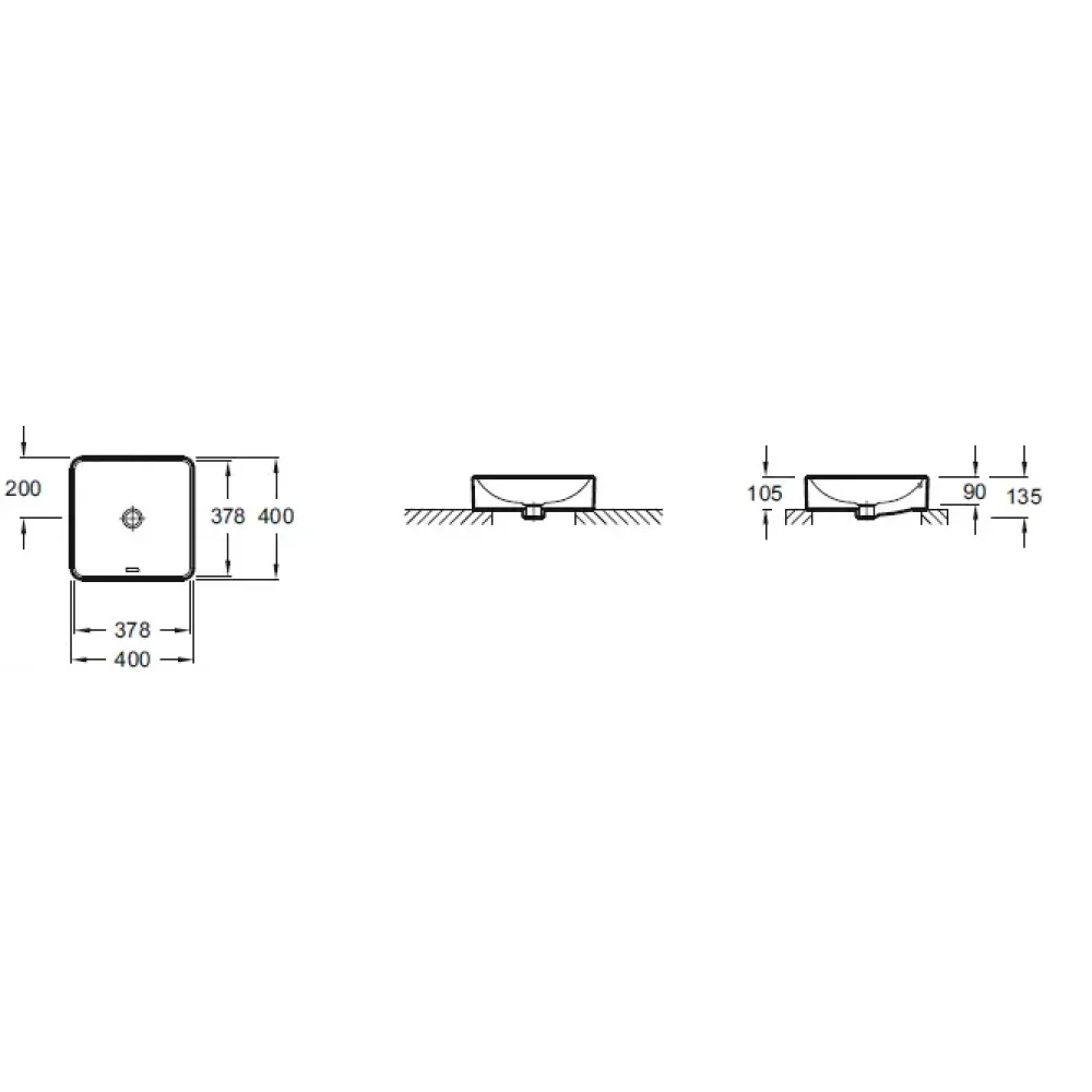 Технические характеристики Накладная раковина Vox 40х40х13,5 см, с отверстием перелива в передней части, с заглушкой, санфарфор EVG102-00 Jacob Delafon