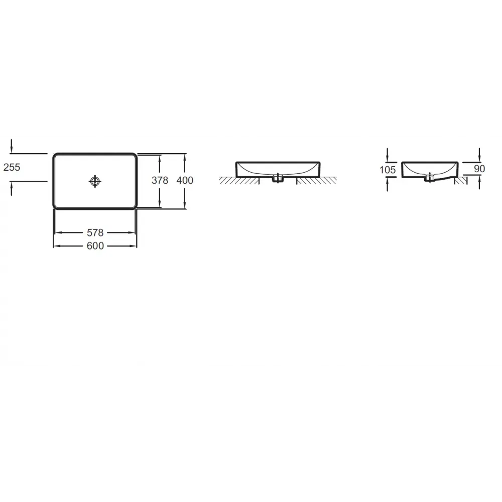 Технические характеристики Накладная раковина Vox 60х40х13,5 см, без переливного отверстия, без отверстия для смесителя, санфарфор EVF002-00 Jacob Delafon