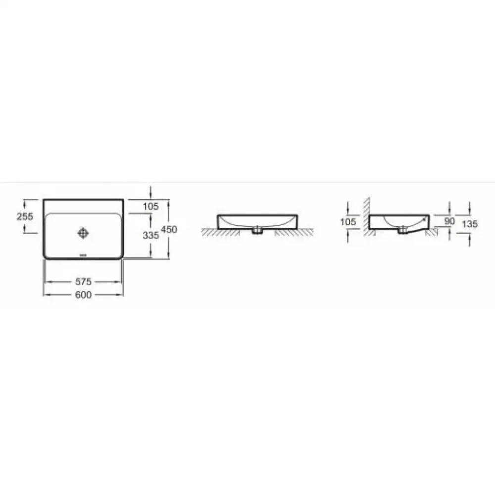 Технические характеристики Накладная раковина Vox 60х45х13,5 см, без отверстия для смесителя, с переливным отверстием, санфарфор EVD102-00 Jacob Delafon