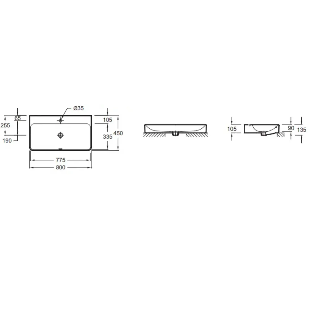 Технические характеристики Накладная раковина Vox 80х45х13,5 см, отверстие перелива в передней части, с заглушкой, санфарфор, с отв. под смеситель EVC112-00 Jacob Delafon