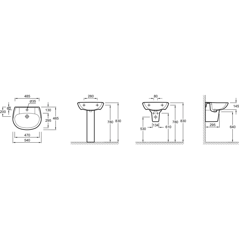Технические характеристики Подвесная раковина Brive 54х46,5х14,5 см, санфарфор, с отв. под смеситель E1282F-00 Jacob Delafon