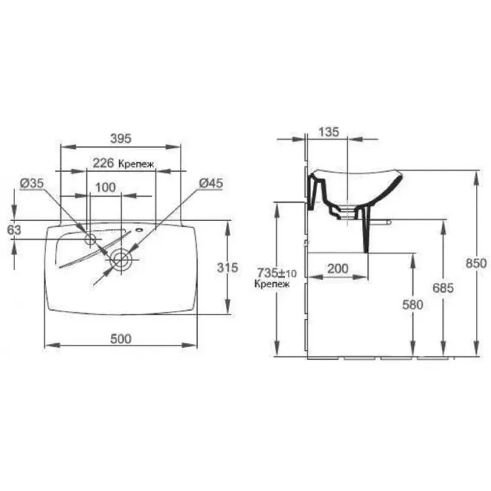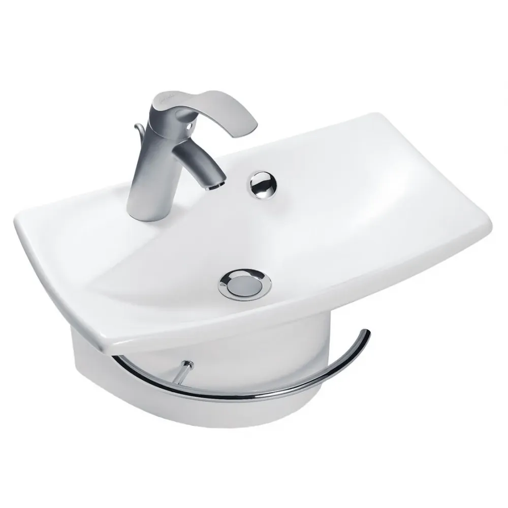 Рукомойник с единым полупьедесталом, хромированной заглушкой для переливного отверстия Е4061 и одним отверстием для смесителя.