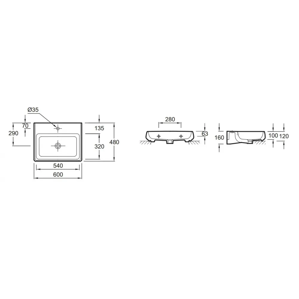Технические характеристики Подвесная раковина Fit 60х48х12 см, одно сквозное отверстие для смесителя, 2 размеченных, санфарфор E1188-00 Jacob Delafon