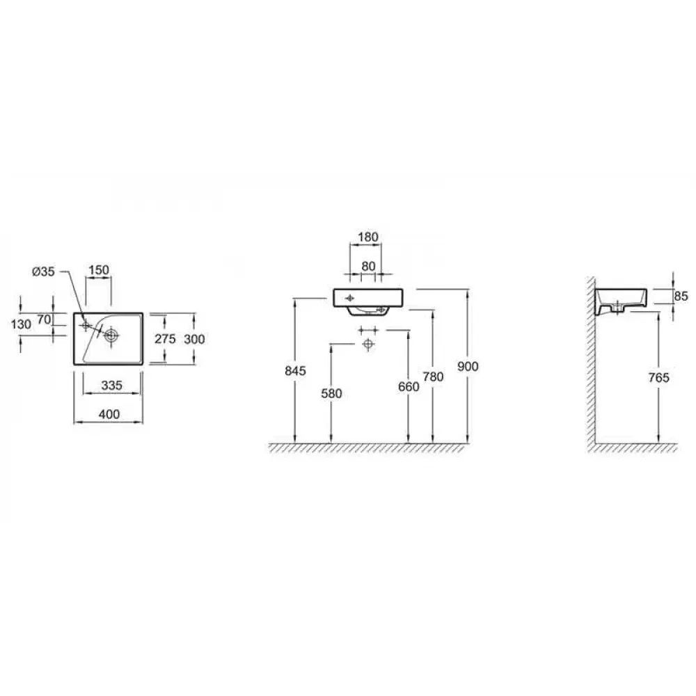 Технические характеристики Подвесная раковина Formilia 40х30х8,5 см, с 1 отверстием под смеситель, санфарфор E4786-00 Jacob Delafon