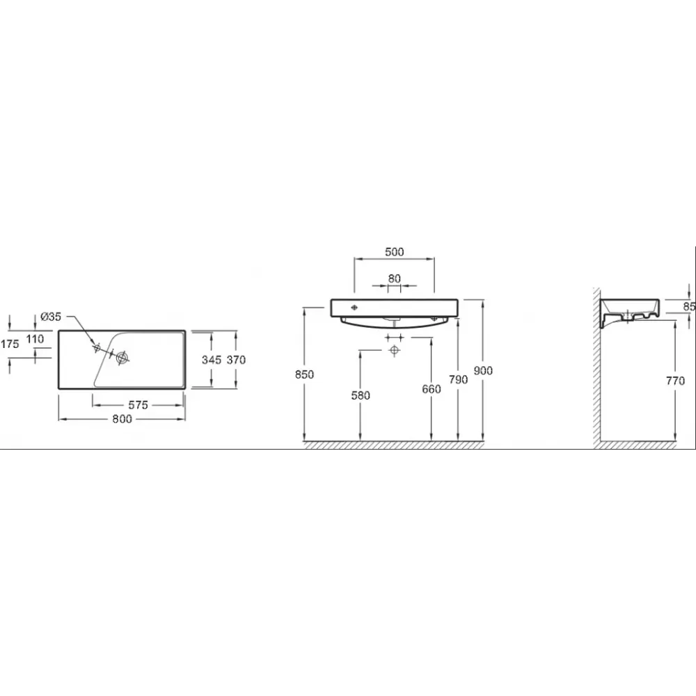 Технические характеристики Подвесная раковина Formilia Rythmik 80х37х8,5 см, одно отверстие для смесителя, санфарфор EXP112-00 Jacob Delafon