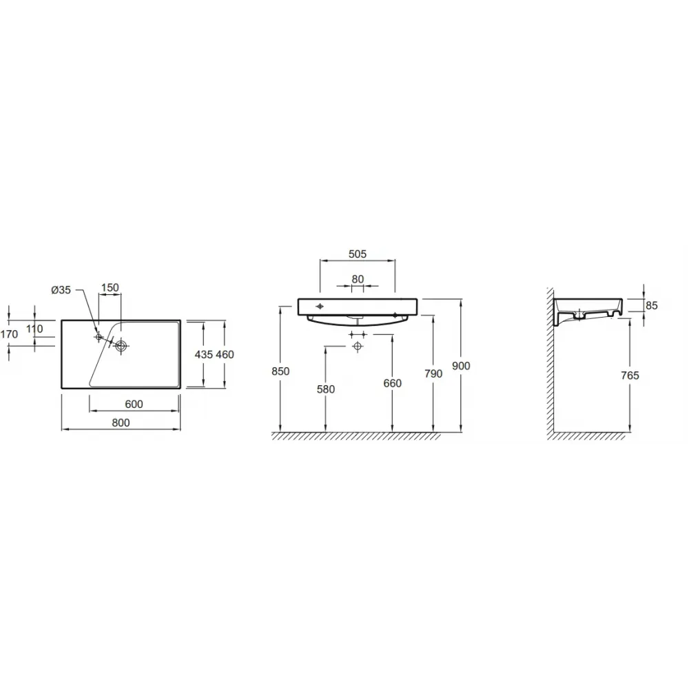 Технические характеристики Подвесная раковина Formilia Rythmik 80х46х8,5 см, санфарфор EXO112-00 Jacob Delafon
