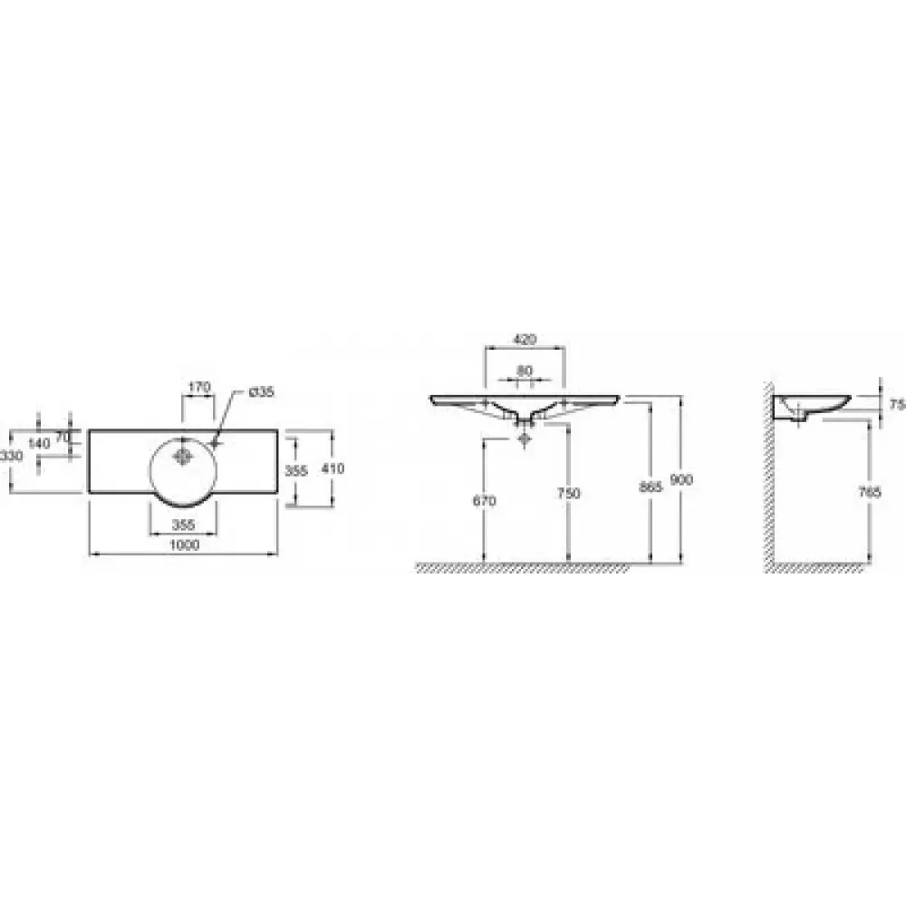 Технические характеристики Подвесная раковина Formilia Spherik 100х41х15 см, 1 отверстие для смесителя с правой стороны., санфарфор E4508-00 Jacob Delafon