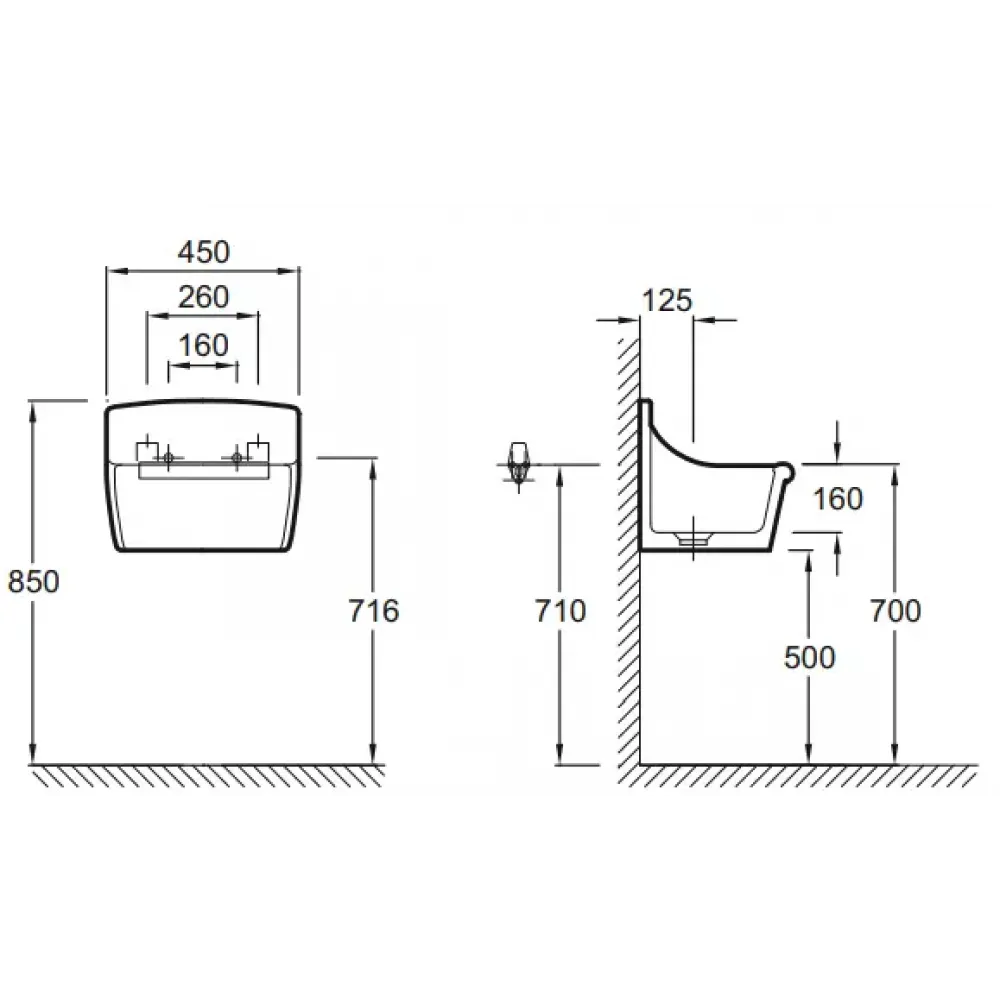 Технические характеристики Подвесная раковина Norma 45х36х16 см, с отверстиями для решетки, санфарфор E1899-00 Jacob Delafon
