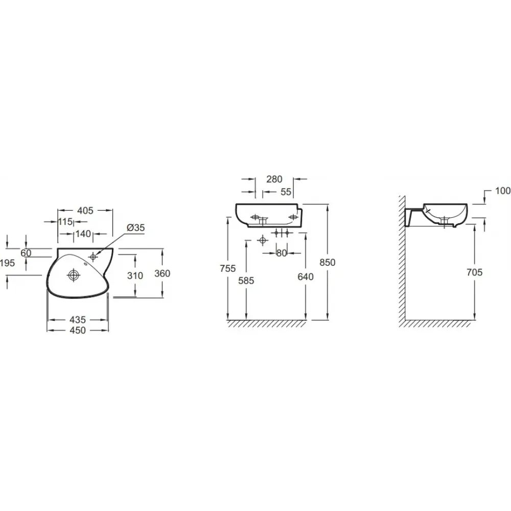 Технические характеристики Подвесная раковина Nouvelle Vague 45х36х10 см, 1 отверстие для смесителя, санфарфор EGK112-00 Jacob Delafon