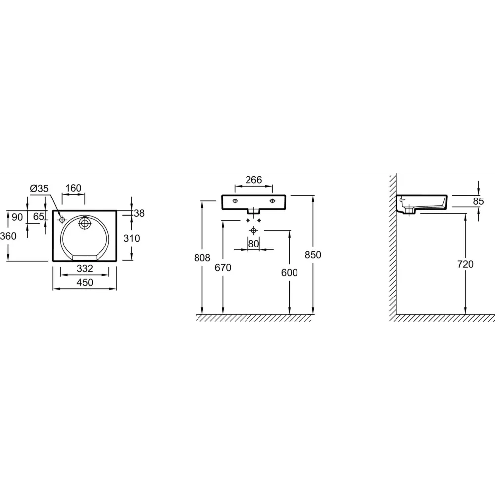 Технические характеристики Подвесная раковина Odeon Rive Gauche 45х36х8,5 см, санфарфор, угловая EGN112-00 Jacob Delafon