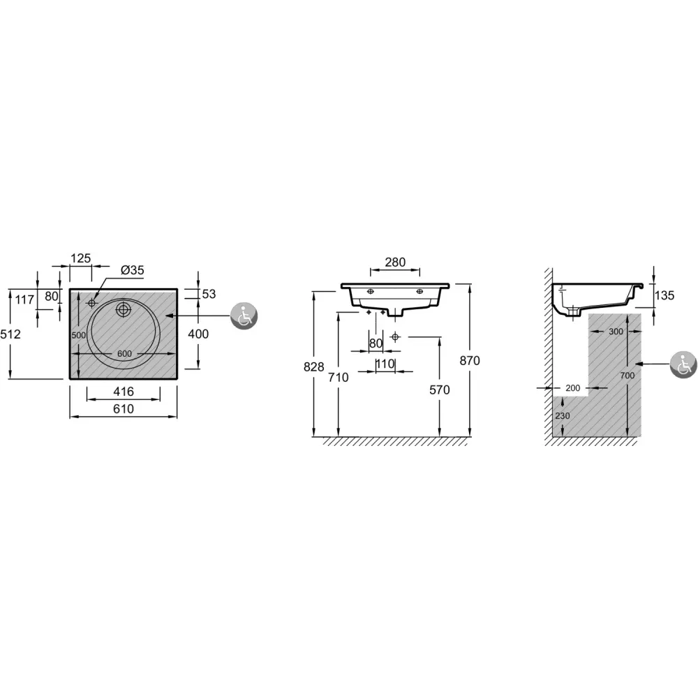 Ровные края керамики облегчают установку и герметизацию швов, а скругленные углы позволяют легко очистить поверхность раковины.