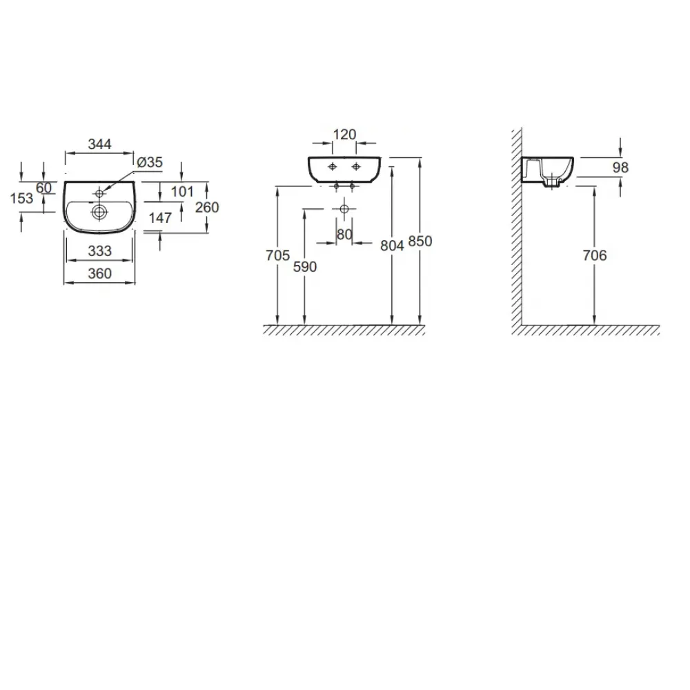 Технические характеристики Подвесная раковина Odeon Up 36х26х9,8 см, 1 отверстие для смесителя, санфарфор E4761-00 Jacob Delafon