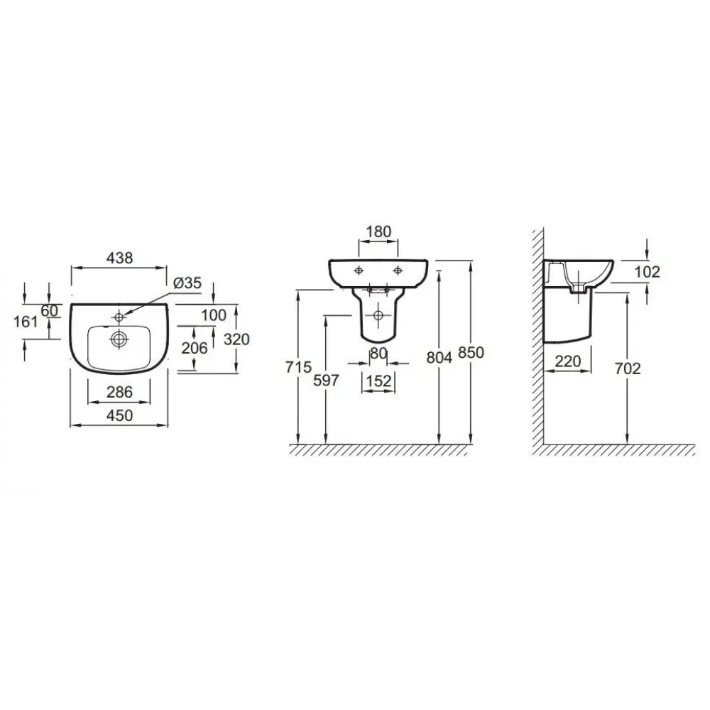 Технические характеристики Подвесная раковина Odeon Up 45х32х10,2 см, 1 отверстие для смесителя, санфарфор E4760-00 Jacob Delafon