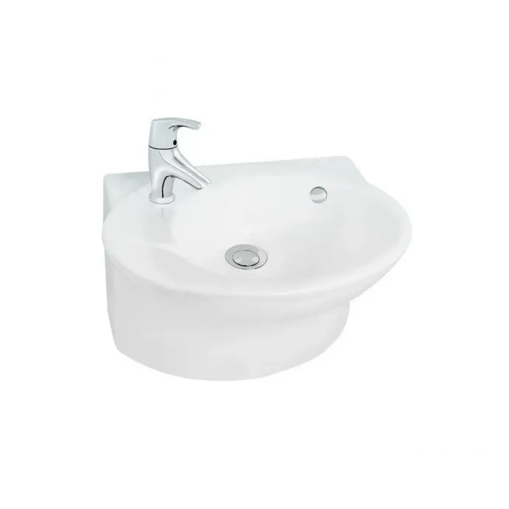 Технические характеристики Подвесная раковина Presqu'ile 45х33,5х10 см, с 1 отверстием для смесителя, отверстия для полотенцедержателя, санфарфор, угловая E1337-00 Jacob Delafon