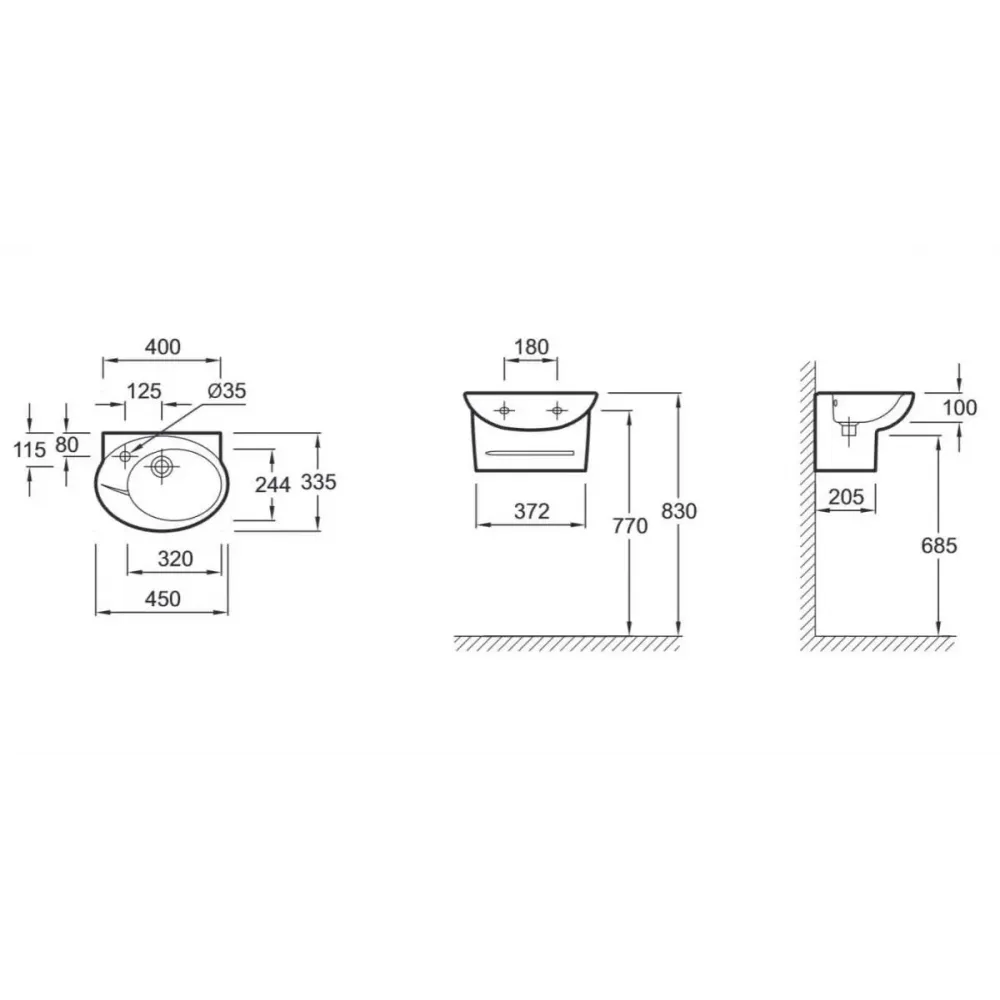 Рукомойник (45 х 33,5 см) с единым полупьедесталом и хромированной заглушкой для переливного отверстия Е4061.