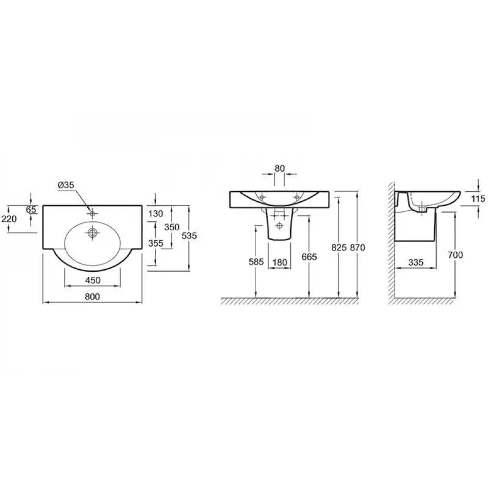 Технические характеристики Подвесная раковина Presqu'ile 80х53,5х11,5 см, санфарфор E1343-00 Jacob Delafon