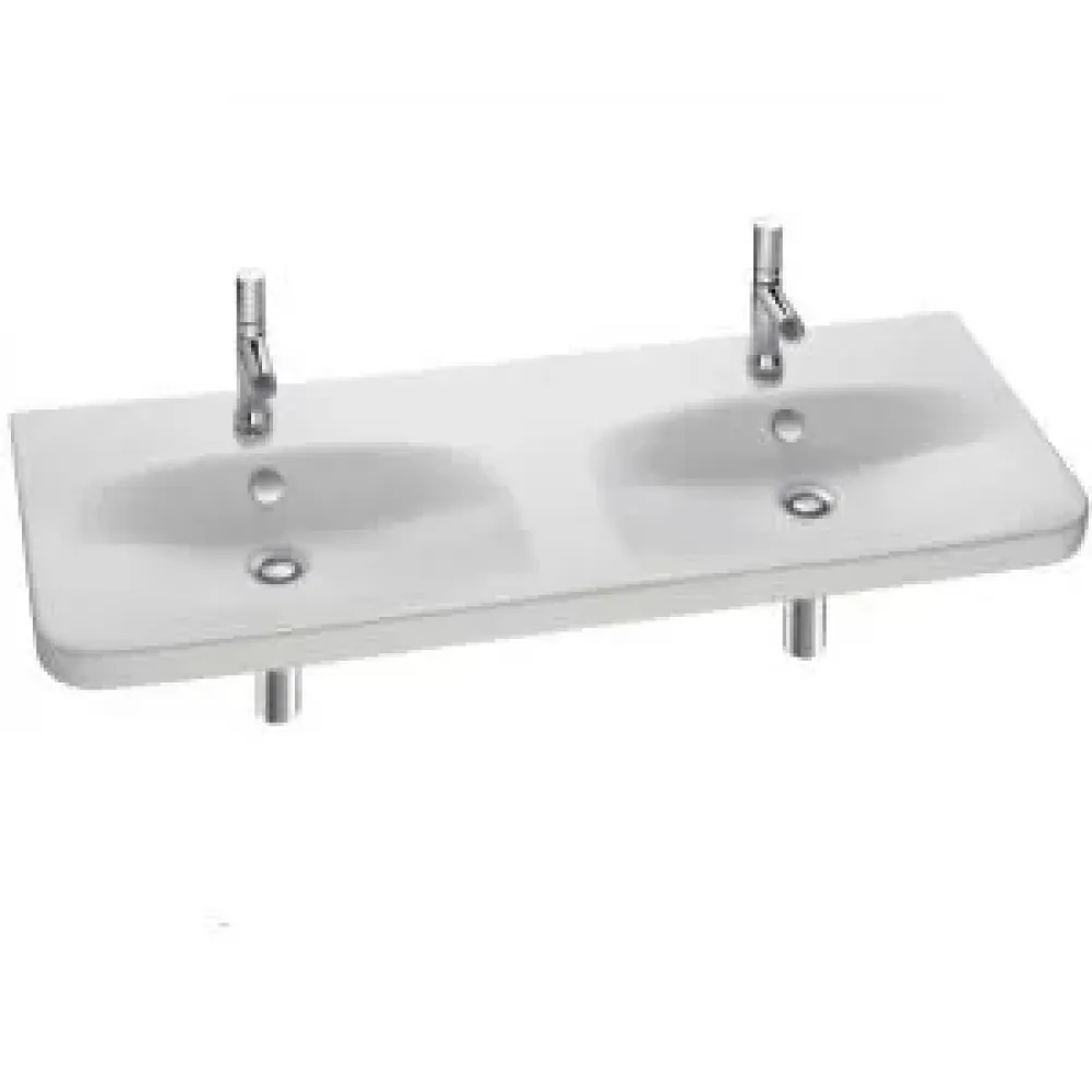 Подвесная раковина Replay 120х46х8 см, с 1 отверстием для смесителя с каждой стороны, без переливного отверстия, санфарфор, двойная E4488-00 Jacob Delafon