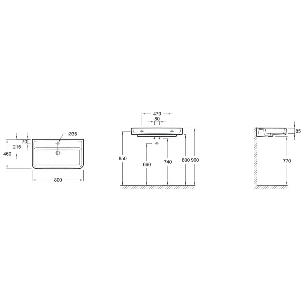 Технические характеристики Подвесная раковина Replay 80х46х8,5 см, с 1 отверстием для смесителя, санфарфор E4490-00 Jacob Delafon
