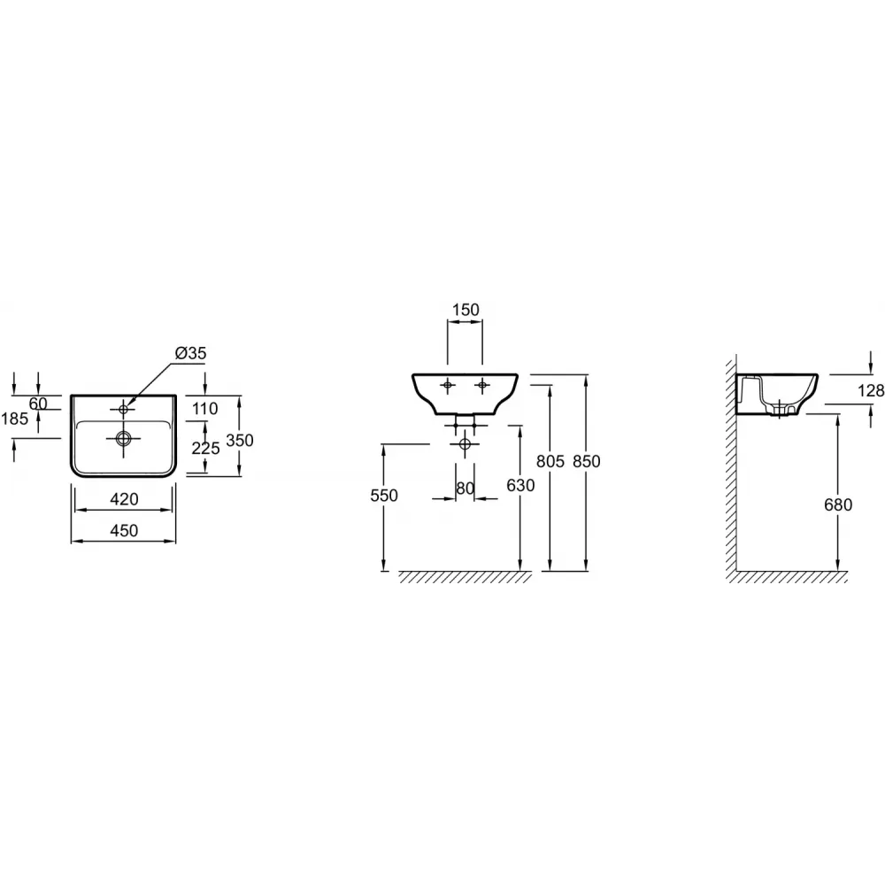 Технические характеристики Подвесная раковина Struktura 45х35х12,8 см, 1 отв. под смеситель, без перелива, санфарфор EGH011-00 Jacob Delafon