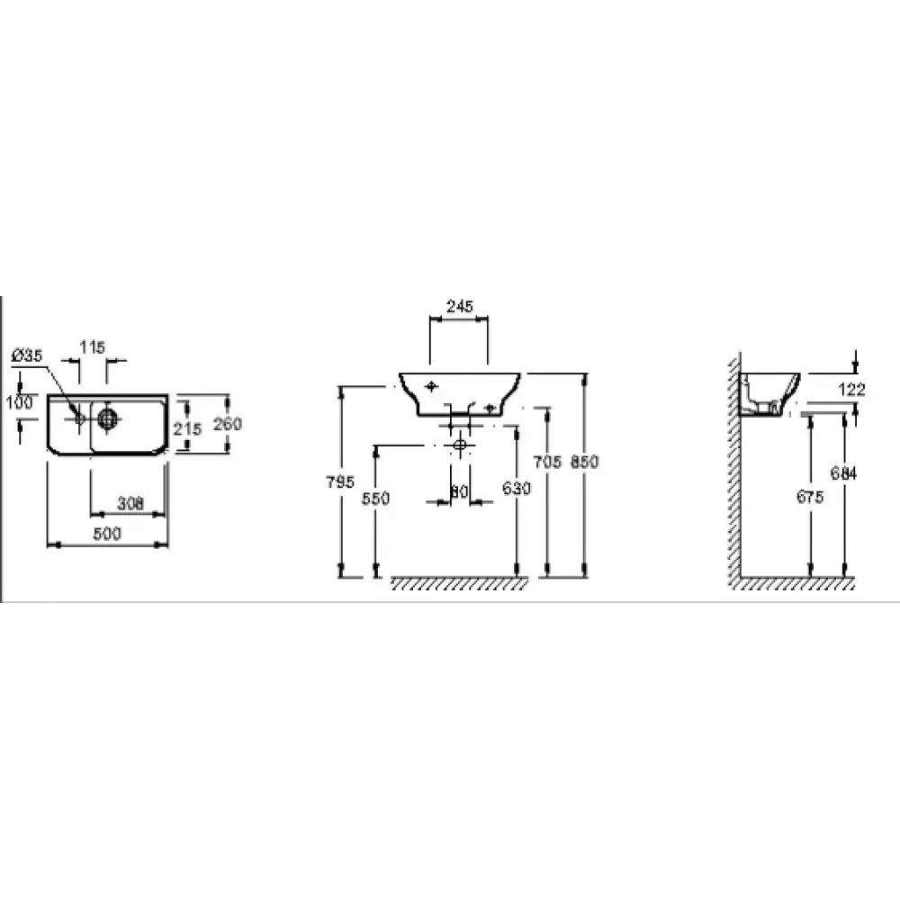 Рукомойник (50 х 26 см) с одним отверстием под смеситель.