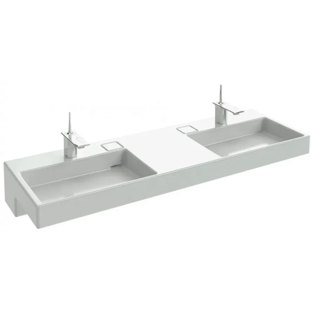 Подвесная раковина Terrace 150х49х8,9 см, c подсветкой, 2 отверстия для смесителя справа и слева, система слива freedrain, санфарфор, двойная EXA9112-00 Jacob Delafon