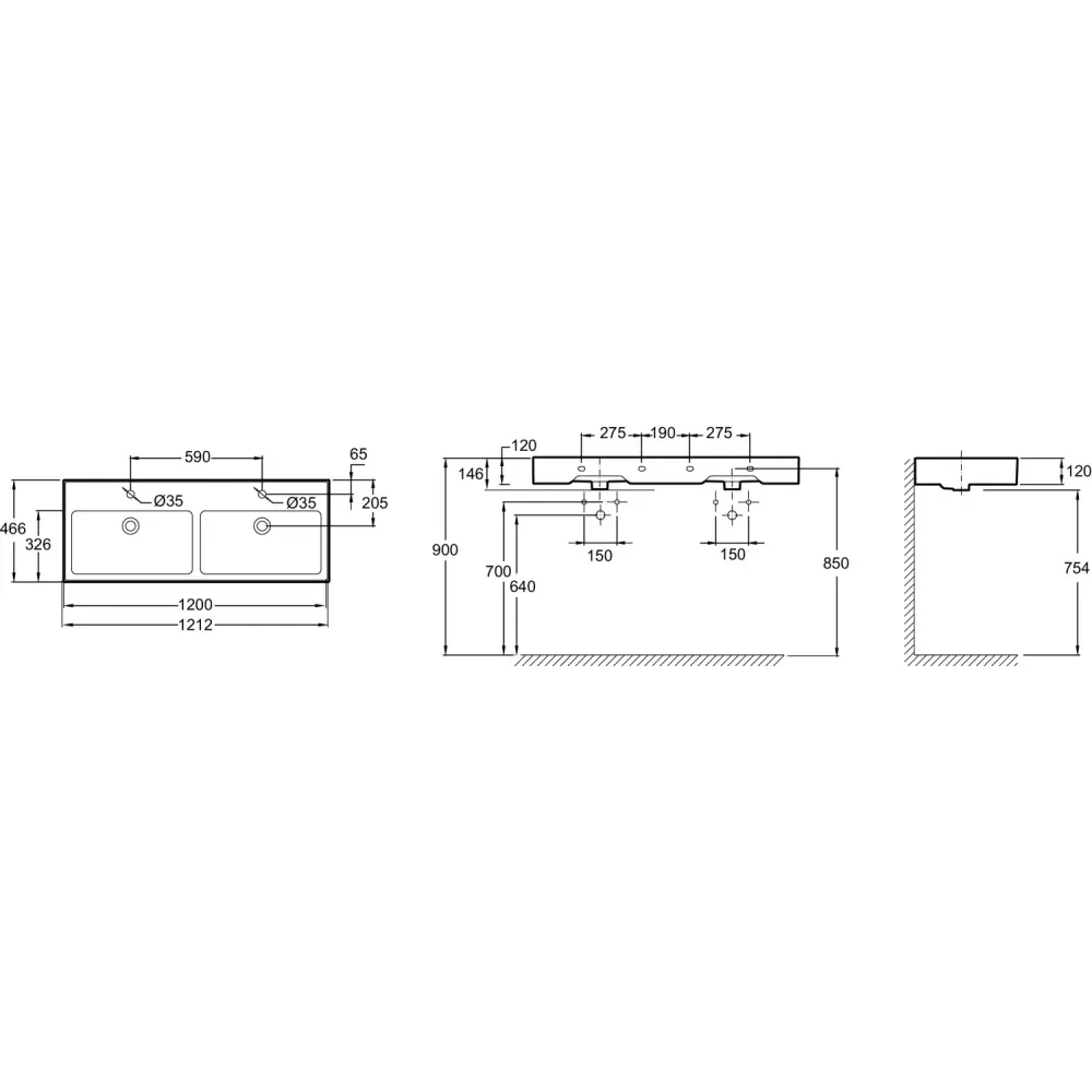 Технические характеристики Подвесная раковина Vivienne 120х46,6х12 см, санфарфор, двойная EXBL112-00 Jacob Delafon