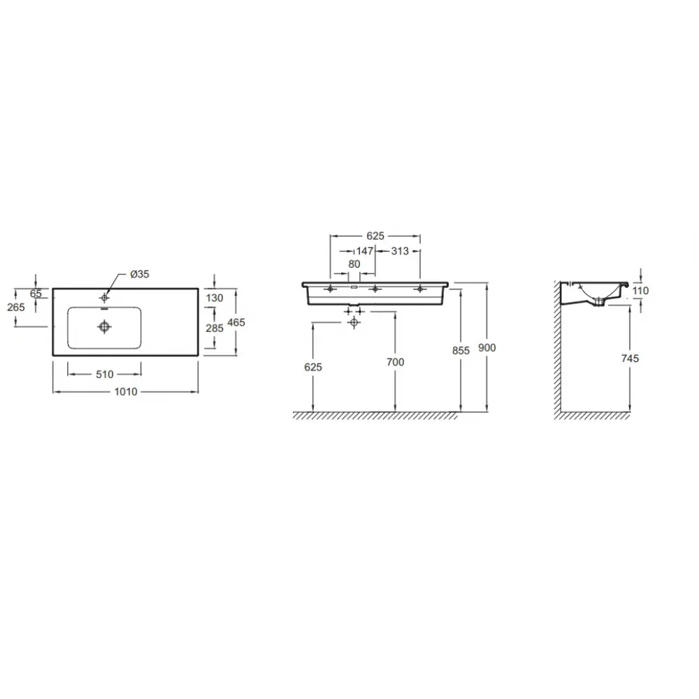 Технические характеристики Подвесная раковина Vox 100х46х11 см, левая, столешница справа, одно отверстие для смесителя, санфарфор EXAC112-00 Jacob Delafon