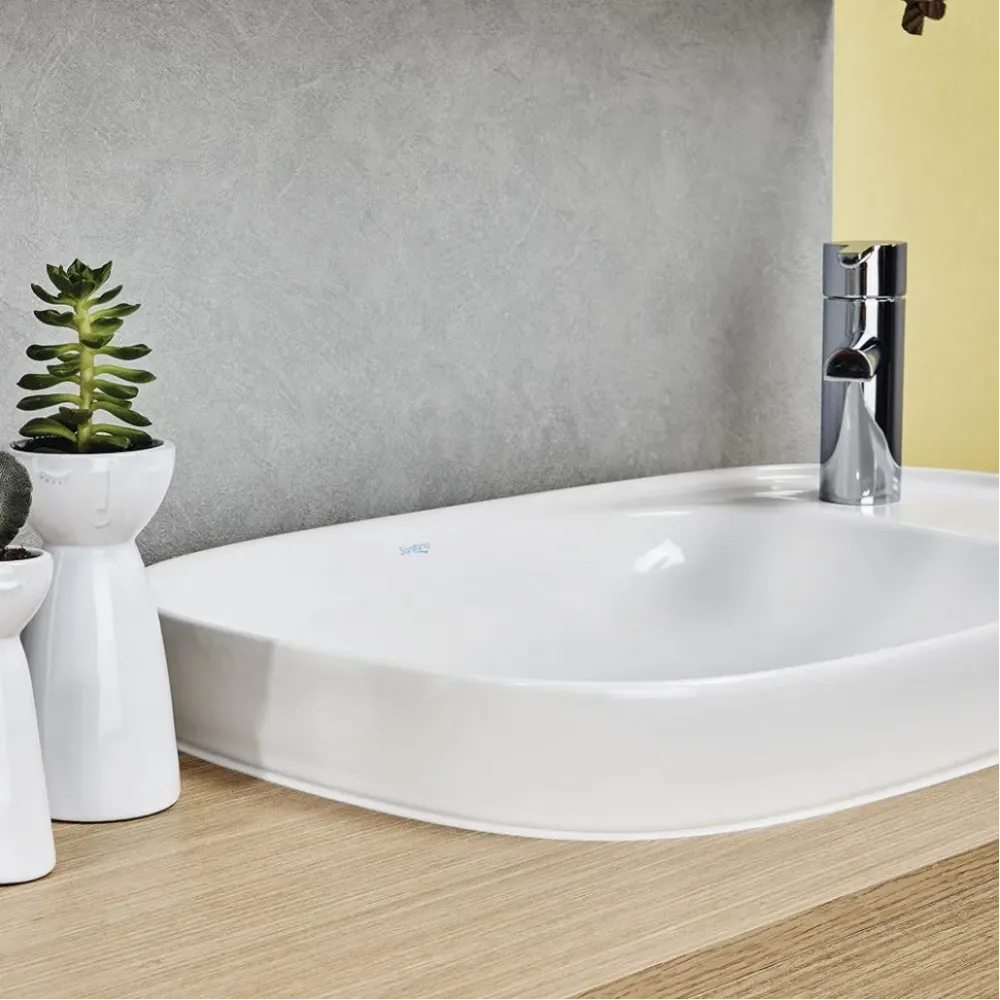 Ассимметричная встраиваемая раковина с отверстием под смеситель коллекции BE YOU от португальского бренда SANITANA сделает гигиенические процедуры легкими и приятными. Отверстие под смеситель расположено справа, что позволяет учесть особенности планировки санузла, максимально практично используя пространство.Встраиваемые раковинымонтируются в отверстие в столешнице, подготовленное заранее. Компактный размер позволяет установку даже в небольшой санузел.