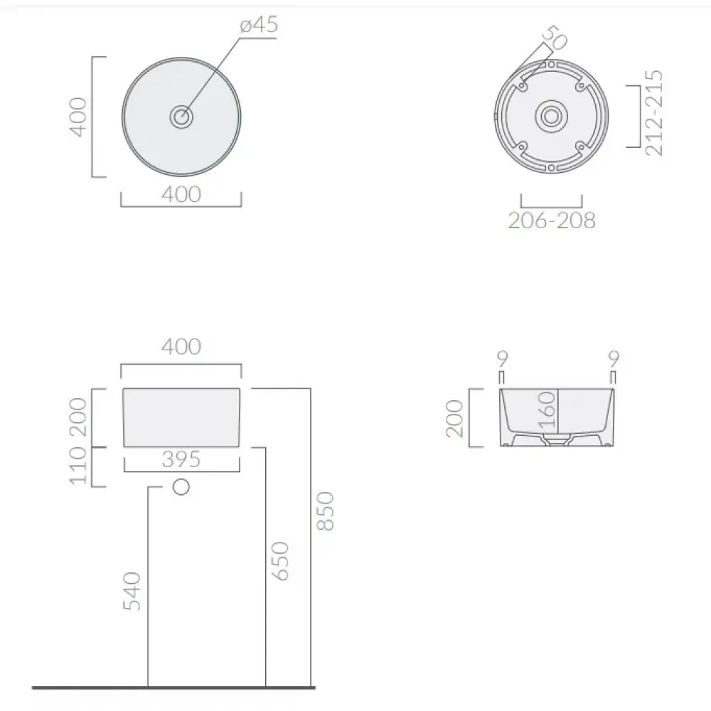 CORE40/7306 раковина диаметр 40см высота 20 см, белая