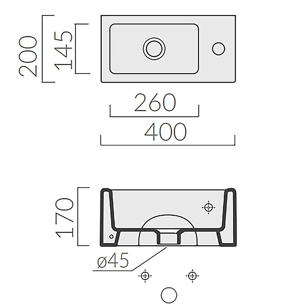 PLUS DESIGN/6030M Раковина CM. 40X20 с одним отверстием подвесная или накладная, белая