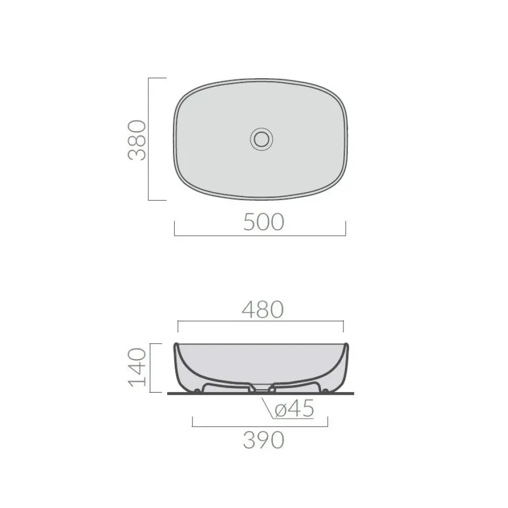 DREAM/7301GM раковина накладная 50*38*h14см, без отверстий, без слива/перелива, серая матовая