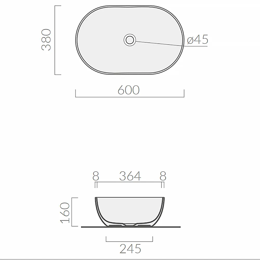 DREAM/7308OC раковина накладная 60*38*h16см, без отверстий, без слива/перелива, Охра