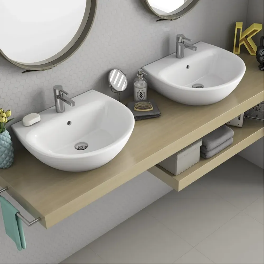 Широкая подвесная раковина с отверстием под смеситель от португальского бренда SANITANA добавит изящества и комфорта в ванную комнату. На раковине предусмотрено место для смесителя, что минимизирует монтажные работы. Подвесной монтаж экономит пространство: под раковиной можно разместить стиральную машину или корзину для белья. Размер 62 см подойдет для просторных санузлов.